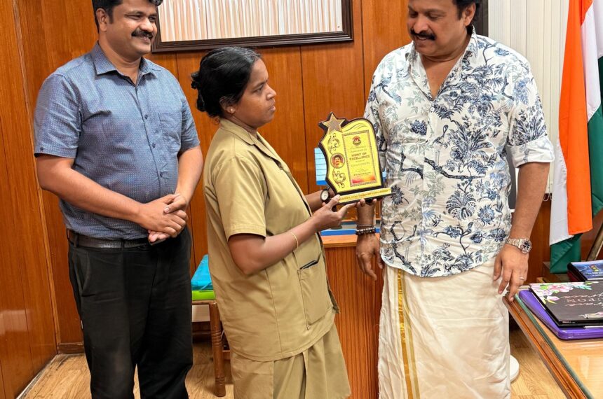 മാതൃകാപരമായ പെരുമാറ്റത്തിലൂടെ യാത്രക്കാരുടെ പ്രശംസ പിടിച്ച് പറ്റിയ വനിതാ കണ്ടക്ടറെ സ്വന്തം ഓഫീസിൽ വച്ച് അഭിനന്ദിച്ച് മന്ത്രി കെ ബി ഗണേഷ് കുമാർ. കെ. എസ്. ആർ. ടി.സി. കൊട്ടാരക്കര ഡിപ്പോയിലെ കണ്ടക്ടർ കെ. രേഖയാണ് ആ കണ്ടക്ടർ. ഇങ്ങനെ ആകണം കെ. എസ്. ആർ. ടി.സി...