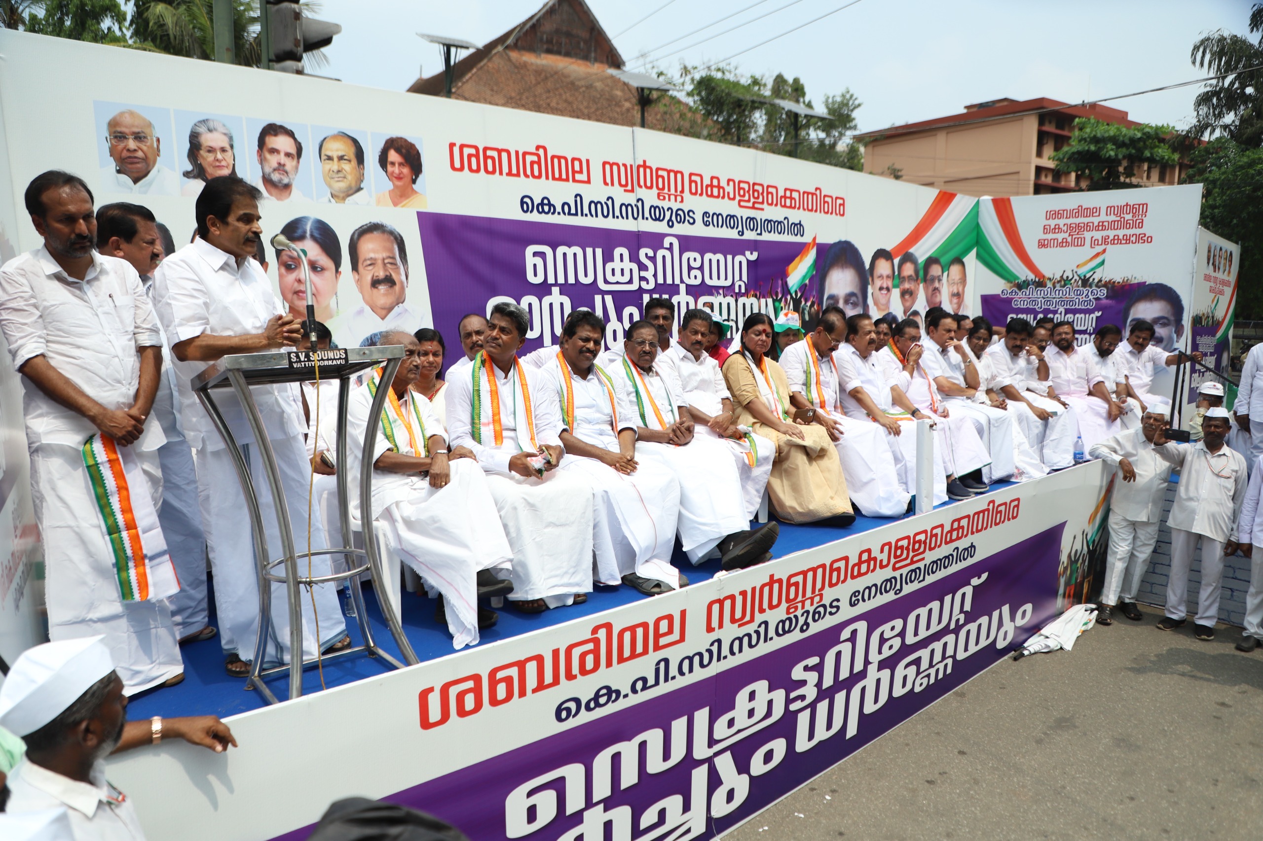 ശബരിമല സ്വർണ്ണക്കൊള്ളക്കേസിൽ എല്ലാ പ്രതികളെയും അറസ്റ്റ് ചെയ്യണമെന്നും ദേവസ്വം മന്ത്രി വി എൻ വാസവൻ രാജി വയ്ക്കണമെന്നും ആവശ്യപ്പെട്ട് കോൺഗ്രസ് സെക്രട്ടേറിയറ്റ് മാർച്ചും ധർണയും നടത്തി. കേരളത്തിന്റെ ചുമതലയുള്ള എഐസിസി ജനറൽ സെക്രട്ടറി ദീപാ ദാസ് മുൻഷി ഉദ്ഘാടനം ചെയ്തു.