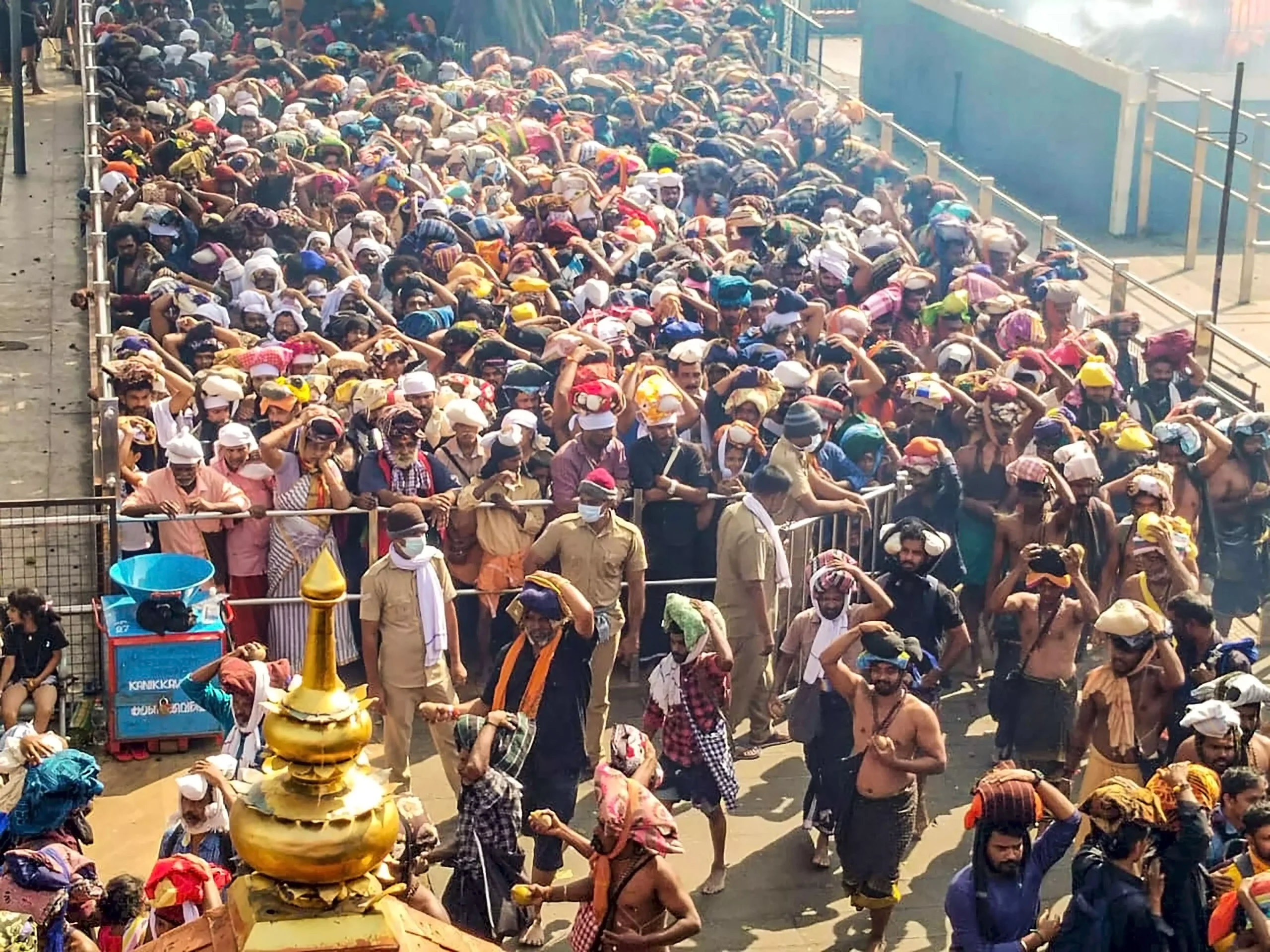 തിരുവിതാംകൂർ ദേവസ്വം ബോർഡിൻ്റെ കണക്കുകൾ പ്രകാരം ഒരു ദിവസം ഉൾക്കൊള്ളാൻ കഴിയുന്ന പരമാവധി തീർത്ഥാടകരുടെ എണ്ണം 90,000 ആണ്. ആ പരിധി മറികടന്ന് ഭക്തജന പ്രവാഹമാണ് ഇന്ന് സന്നിധാനത്തേക്ക് ഒഴുകിയെത്തിയത്. നട തുറന്ന ഇന്നലെ 53,278 പേർ ദർശനം നടത്തിയെങ്കിൽ, ഇന്നത് 98,915 ആയി.