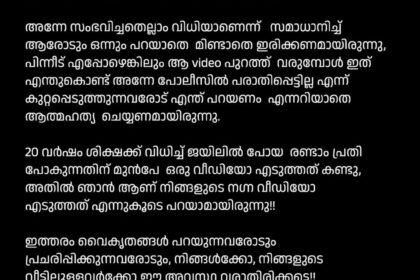 ഇരയുമല്ല അതിജീവിതയുമല്ല, ഒരു സാധാരണ മനുഷ്യ ജീവി എന്ന കുറിപ്പുമായി ആക്രമിക്കപ്പെട്ട നടി. തന്റെ സോഷ്യൽ മീഡിയ പേജിലാണ് ജീവിക്കാൻ അനുവദിക്കൂ എന്നുള്ള പോസ്റ്റ് ഷെയർ ചെയ്തിരിക്കുന്നത്. നടിയുടെ പോസ്റ്റിന്റെ ...